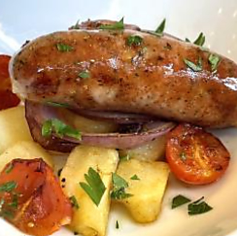 自家製のサルシッチャ ポテトとトマトをご一緒に