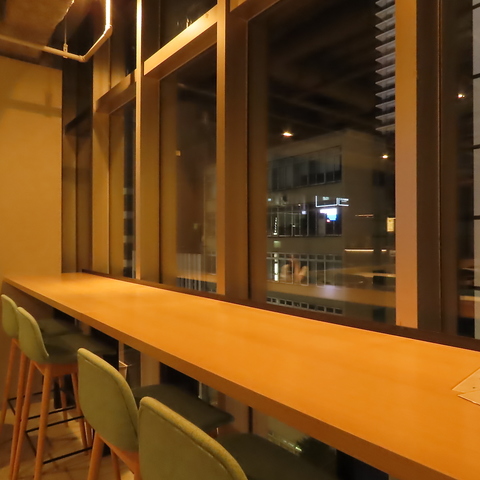 おしゃれな雰囲気の店内は、開放感あふれるガラス張り。友人との楽しいひとときはもちろん、お一人様でも気軽に訪れやすい居酒屋スタイルです。落ち着いた雰囲気の中で、自分のペースでゆったりとお食事を楽しむことができます♪女子会にオススメな半個室も◎