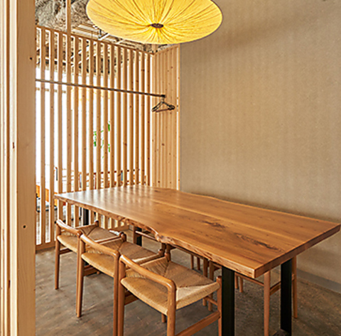【半個室席:6名様×1/10名様×1】プライベート感あふれる半個室席は、誕生日などの特別な集まりに最適です。落ち着いた雰囲気の中、周囲を気にせずゆったりとした時間を過ごせる空間が魅力です。女子会にも◎