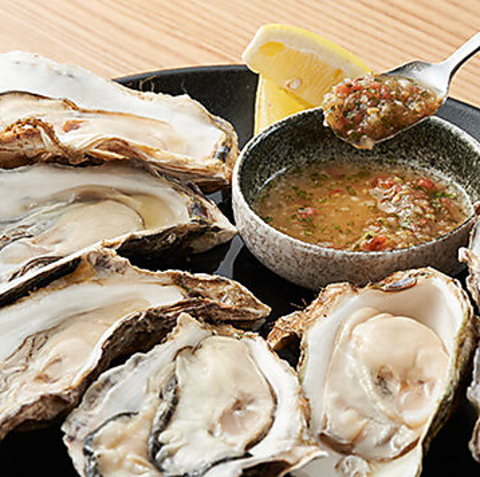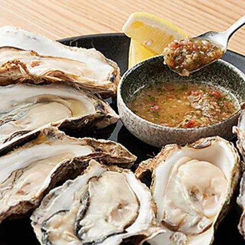 北海道産のみに拘る、当店の看板商品。浜直送で鮮度は抜群。自家製サルサソースやタバスコなどと季節に応じた北海道各地の牡蠣の味覚をお楽しみ下さい。