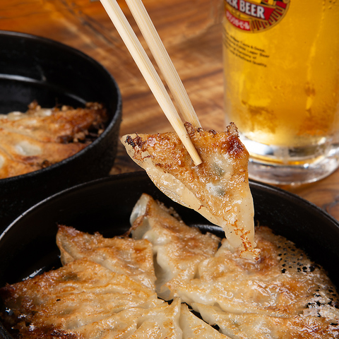 国産食材にこだわった”鉄鍋ぎょうざ”は、パリッと焼き上げた皮にジューシーな餡が詰まった一口サイズ。特に人気のニンニクぎょうざは、アツアツで噛むほどに旨みが広がります♪ 肉やキムチなどバラエティ豊かな4種類は、キンキンに冷えた生ビールとの相性も抜群で、一度食べたらやみつきになること間違いなし☆