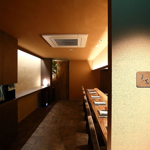 貸切は最大8名までご案内可能です。お電話にて事前にお問い合わせいただけますと幸いです。ゆったりと寛げる居心地の良さ。鉄板の上で沸き起こる音と香りを背に五感を刺激されながら、絶品料理とお喋りを満喫できる。少人数宴会でのご利用や友人とのお食事に是非。