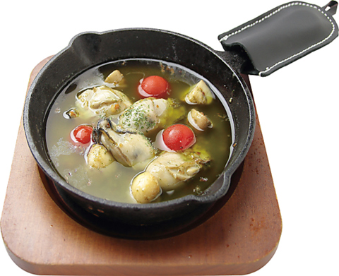 牡蠣とマッシュルームとミニトマトのアヒージョ