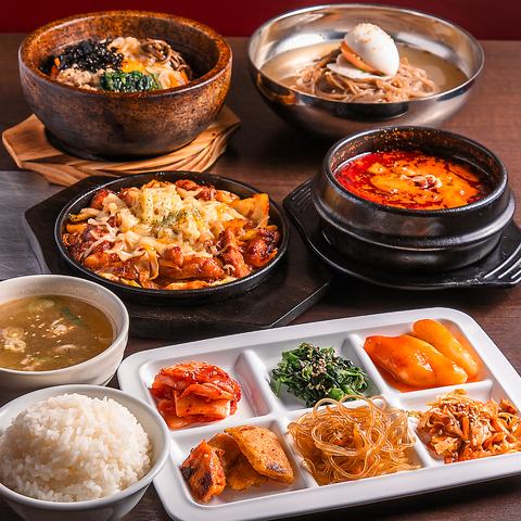 当店は、サムギョプサル定食や石焼ビビンバ、チゲ、冷麺など、豊富な定食メニューが充実しています♪日替わりのお惣菜やライス、スープも付いて、ボリューム満点でお得感たっぷり!友達とのランチや仕事の合間にぴったりの美味しいご飯を楽しんで、心もお腹も満たされに来てください☆