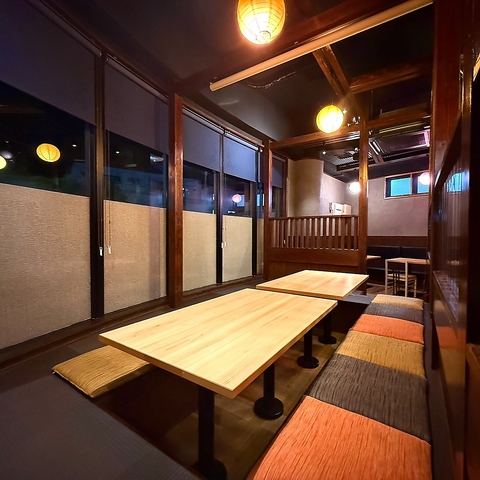 カウンター席は全6席、4名様用テーブル席は全6卓ご用意しております。さらに、足をのばしてくつろげる、掘りごたつのお座敷席を全2卓、ご用意しております。掘りごたつ席は、2卓一緒に利用すると、最大10名様でご利用可能です!友人や会社の同僚と一緒に、楽しい食事のひとときを過ごすことができます。