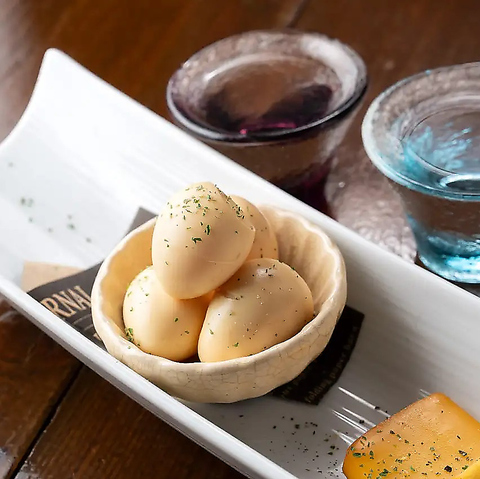燻製のうずら卵は、半熟に仕上げた丁寧な調理が特徴。風味と甘みのバランスが絶品です!チーズの燻製はスモーキーな香りがクセになる美味しさ♪お酒との相性もバツグン◎ぜひご賞味ください!