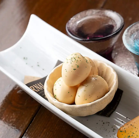 当店に来たら是非お試しいただきたいのが、「燻製のうずら卵」!半熟に仕上げた丁寧な調理が特徴です。旨みたっぷりに燻製し、絶妙な風味と甘みのバランスが堪りません!1つ、また1つと箸が進むこと間違いナシ!お酒との相性も良いので、おつまみとしてもオススメです☆