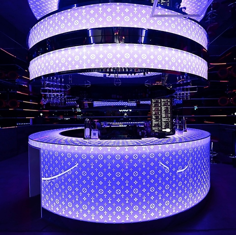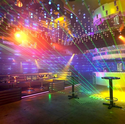 天井のライトが印象的なDANCE FLOOR。わずか400平米ものスペースながら、音響・照明などの設備に5億円を投じて、贅を尽くした空間を創りあげた。予算度外視の音響空間は、著名な音響プロデューサー瀬戸 勝之氏が監修し、世界最先端のVOID acousticsサウンドシステムを搭載。
