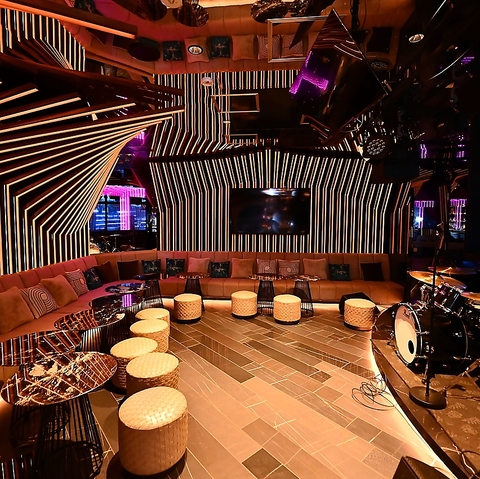 最新の音響設備とプロミュージシャンを備えたこちらのエリアでは、お客様自身が主役となり、贅沢なミュージシャン気分を体験。部屋全体を通して一体感の創出による特別な夜を演出する。