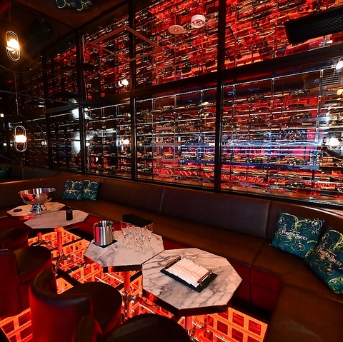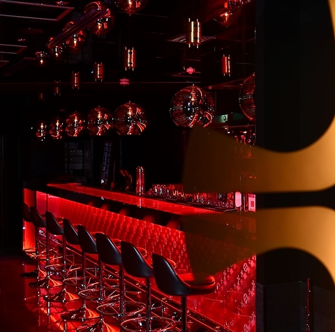 CROSS ROPPONGIに訪れた方を、まずはBAR AREAがお迎えいたします。天井や床にはミラーがあしらわれており、クールな雰囲気を感じさせます。ゆっくりとお酒を飲みながらお寛ぎください。