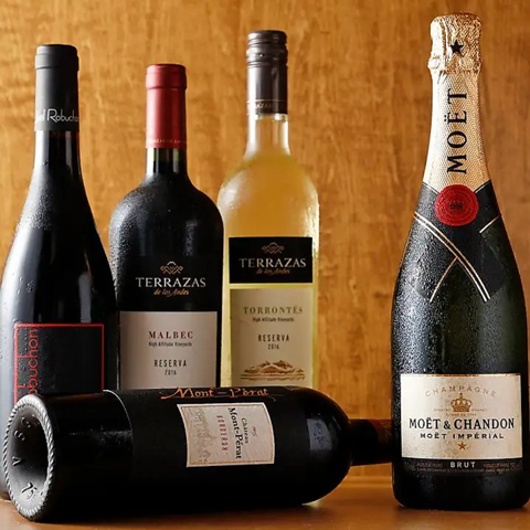 ワインをはじめ、記念日にぴったりのお酒を豊富にご用意しております。デートや大切な人とのお祝いにも◎