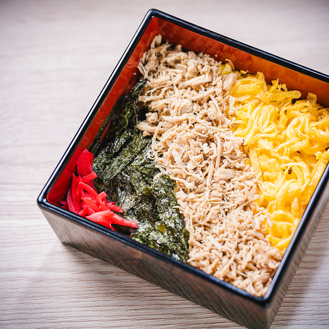 北九州のかしわめしは、鶏の出汁がしっかりと染み込んだご飯に、甘辛く調理した鶏もも肉がのせられ、華やかに仕上げています。錦糸卵と刻んだのりが、食感と風味を一層引き立てます。お酒のおつまみとしても最適で、最後の一口まで楽しめる満足感があります☆