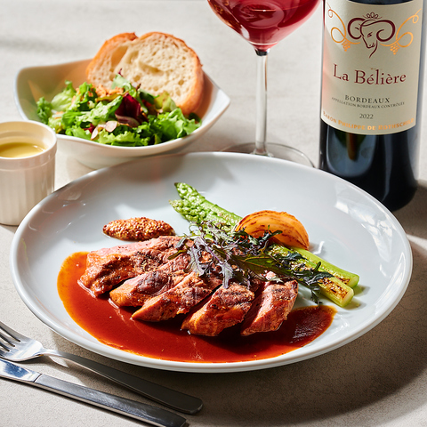 頑張った自分へのご褒美や大切な友人とのランチ会には、ちょっぴり贅沢なセットはいかがですか。スープとサラダ、パンに、4種類から選べるメインディッシュをご用意。ジューシーな鴨のコンフィや、皮目を香ばしく焼いたサーモンなど、シェフの技が光る逸品からお選びいただけます。優雅な午後のひとときを。