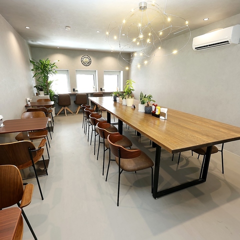 広々とした空間の中央には大きなテーブルがございます。大きなテーブルがなので他のお客様との相席感がなく、ゆっくりお過ごし頂けます。おひとり様でも大歓迎です♪