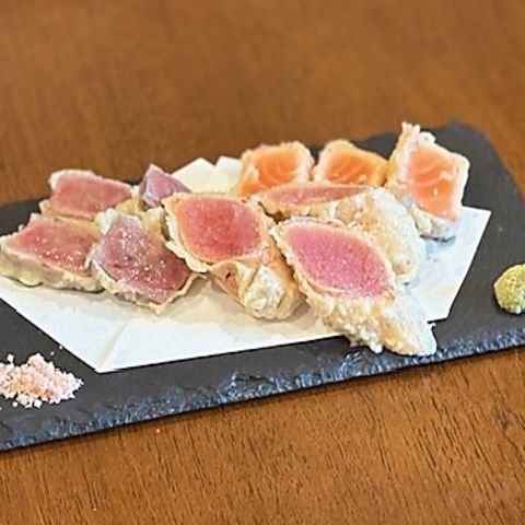 旬鮮野菜の天ぷら盛り合わせは、季節ごとに異なる5種類の野菜を使用した、見た目も美しい一皿です。旬の食材を中心に、新鮮な味わいをお届けします。ヒマラヤ岩塩でさっぱりとした味付けを楽しんでいただき、その時期ならではの美味しさを存分にご堪能ください。内容は毎月変わりますので様々なお味を楽しんでいただけます。
