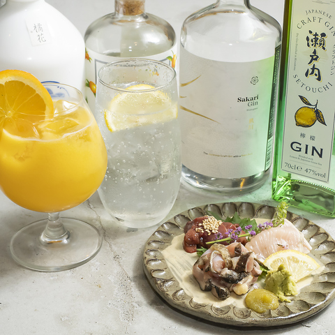 料理と楽しむ多彩なドリンク♪和酒をメインとした様々なドリンクもご提供しております。中でもクラフトジンは、大阪・京都・兵庫のものを多数ラインナップ。さらにオリジナルで、青紫蘇やスダチを使ったジンソーダもご用意しました◎その他日本酒は純米大吟醸をはじめ、生酒やにごり酒などその日のおすすめの銘柄をご堪能いただけます!