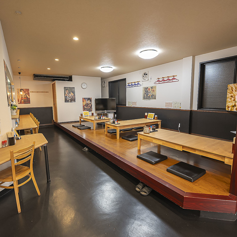 【6名掛け×3卓】当店の広々とした座敷は、6名様までご利用いただくことができ、3卓を完備しています。ご家族でのお食事はもちろん、宴会や飲み会、歓送迎会など、さまざまなシーンにぴったりです。座敷席には大型モニターが設置されており、野球観戦やコンサート鑑賞をしながら、大勢でワイワイ楽しむことができます。