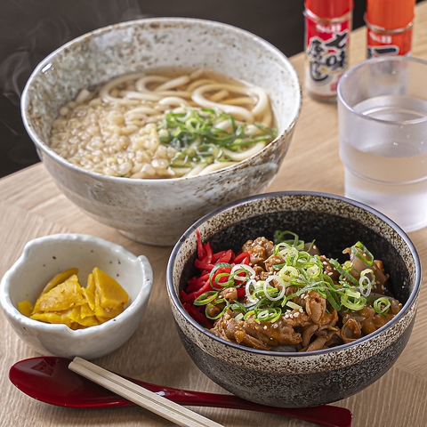 当店ではランチタイムも営業しております。ランチでは喉ごしの良い、うどん・そばをご提供。バリエーション豊富なメニューとサイズが選べるので、その日の気分でお楽しみいただけます。また、お得なセットや定食もご用意!リーズナブルなランチタイムで楽しいひとときをお過ごしください。