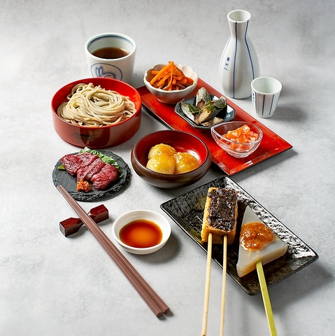福島の味を楽しむ当日限定コース。いかにんじんなど郷土料理三点盛り、馬刺し、豆っこかんぷら風、味噌田楽(こんにゃく・厚揚げ)に、 〆は十割そば・凍餅・おにぎりからお選びいただけます。