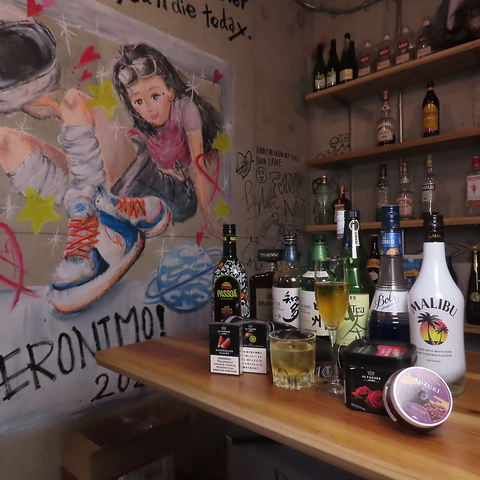 当店では、テーブル席とBOX席(8名掛け・6名掛け)を完備し、最大16名様までご利用いただけます!壁一面に描かれたグラフィティーアートがある魅力的な店内は、懐かしさと新しさを感じるY2Kの影響を受けたデザインです♪デートや女子会、二次会にぴったりの雰囲気で、楽しいひとときをお過ごしくださいませ★
