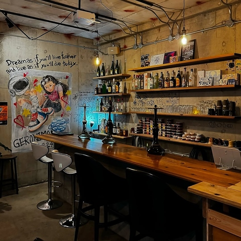 6名様がけのBOX席も完備しており、壁一面に描かれたグラフィティーアートが特徴的です◎アートに囲まれた楽しい空間で、友人たちとの素敵な時間をお楽しみください!カジュアルな雰囲気の中で、リラックスしながらシーシャやお酒を楽しめます。