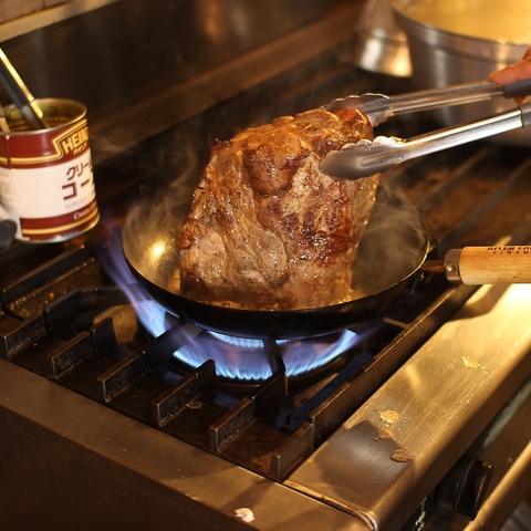 ド迫力の厚切りステーキを焼き上げます