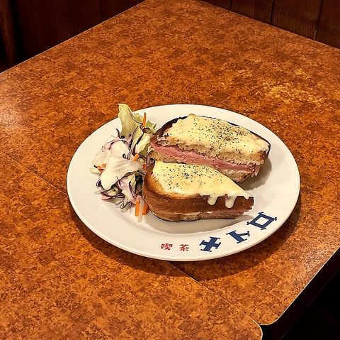 こんがり焼いたトーストにハムとチーズをたっぷりサンド。とろけるホワイトソースと香ばしさが絶妙で、喫茶店ならではの贅沢な味わいです。