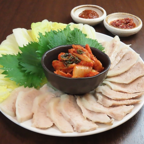 なめらかで口の中でとろけて、ほど良いジューシーな脂身。ポッサム用の薬味とキムチ、包み野菜に包んでお召し上がりください♪もう1回注文したい、もう1度お店に食べに行きたい!と思える逸品です!※写真は3人前のイメージです。