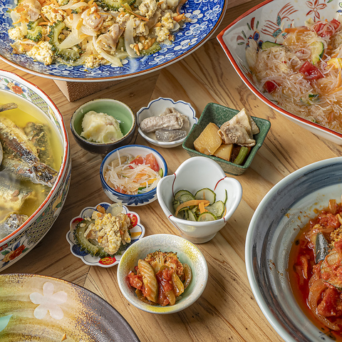 当店のおばんざいは、旬の食材をふんだんに使用した9~10品の大皿料理から選べるスタイルです