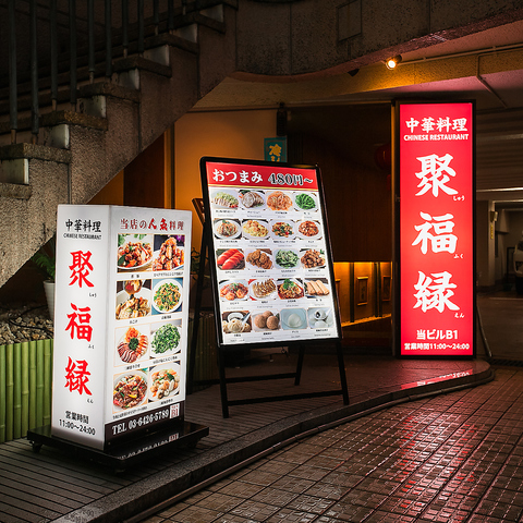 「気軽に中華料理を楽しみたい」「ゆったりとくつろぎたい」、そんな際にふと思い出していただけるよう、遠目からでも少し目立つ外観でお待ちしております。いつもの飲み会にも、記念日を彩る特別な日にも、家庭的な雰囲気で絶品中国料理をお楽しみいただける『聚福縁』をぜひご活用くださいませ。