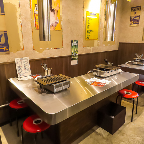 ≪釜山スタイルの店内≫目の前のテーブルでスタッフが丁寧に調理するスタイルをお楽しみいただけます。焼きたての料理が香ばしい煙と共に立ち上がり、食欲をそそります。会話を楽しみながら出来立ての美味しさを味わえるのが魅力。シェアしやすいメニューが豊富で、ライブ感あふれる食体験をお楽しみください!