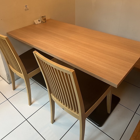 | テーブル | 2名様×2 | 当店では、少人数のお客様向けに2名様掛けのテーブルを2席ご用意しております。テーブルは広めに設計してありますので、ゆとりあるスペースでお料理をお楽しみいただけます。 |