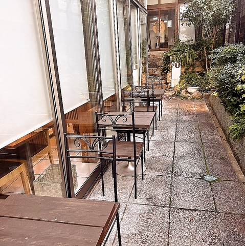 | テラス席 | 2名様×3 | 当店では、テラス席として、2名様掛けのテーブル席を3席ご用意しております。外の空気を感じながら食べるお料理は格別ですので、ぜひお気軽にお申し付けください。 |