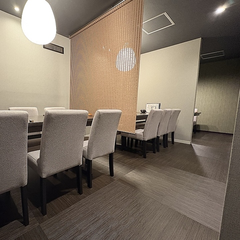 6名様から12名様までご利用いただける半個室をご用意しております。この半個室は、周囲を気にせずにプライベート感を大切にした設計となっており、友人や家族との特別な時間を過ごすのに最適です。落ち着いた雰囲気の中で、心ゆくまでお料理を楽しむことができ、特別な日のお祝いにもぴったりです。