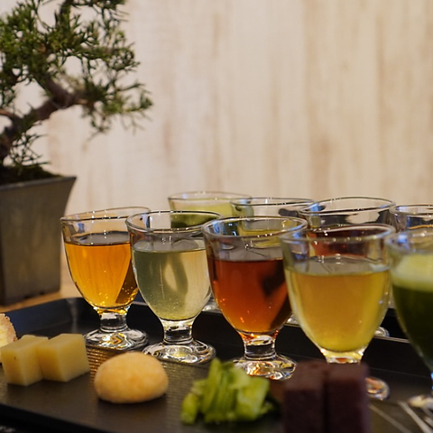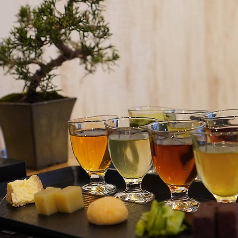 抹茶や煎茶など5種のお茶と自家製スイーツの絶妙な組み合わせを楽しめます。