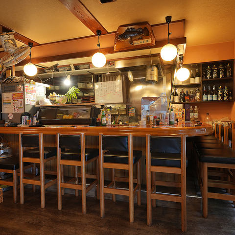 アットホームで和やかな空間のカウンター席も完備◎全7席ご用意したカウンターは、ゆったりとテレビを見ながら家庭料理を堪能できる特等席となっております♪お席での喫煙も可能ですので、ご飲食のあとの一服も。しっぽりとちょい飲みを楽しむのも良し、肩を並べて賑やかにお料理とドリンクを楽しむのも良し♪