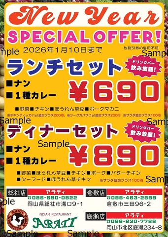 お店に行く前にインド料理&バー ARATI アラティ 庭瀬店のクーポン情報をチェック!