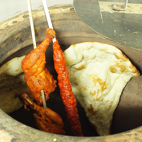 当店の特製ナンとスパイシーな肉料理は、当店自慢の石窯を使って調理を行っております!高温の釡に張り付けて焼くナンは外はカリッと中はもっちもち♪肉料理も肉全体に素早く均等に熱が入り、旨みを逃がさずジューシーに焼き上げます。出来立て熱々をご提供いたしますのでぜひご賞味くださいませ☆