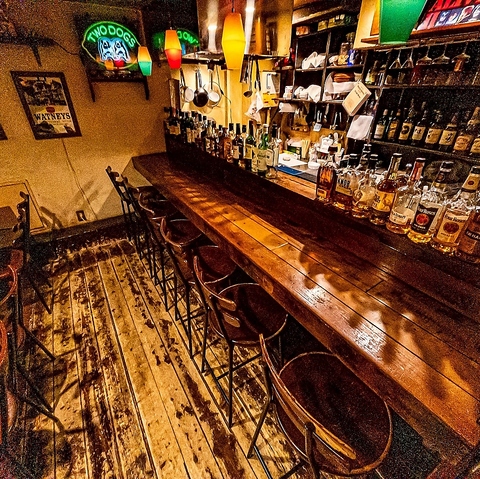 温かみのある照明に照らされた店内は、まるで隠れ家のような落ち着いた雰囲気。ずらりと並んだお酒のボトルが目を引くカウンター席は、全部で6席をご用意しています。一人でゆっくりとグラスを傾けるも良し、大切な人と語らいながら過ごすも良し◎ほどよい距離感が心地よい空間で、とっておきの時間をお過ごしください♪