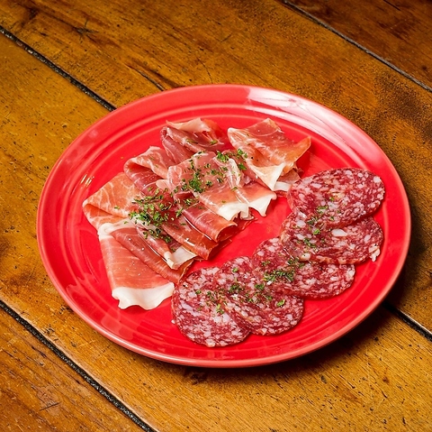 イチオシの生ハムとサラミの盛り合わせは、しっとりとした舌触りの生ハムと、凝縮された旨味がたまらないサラミのコントラストが絶妙♪口に運ぶと、芳醇な香りがふわりと広がり、肉本来の旨みがじゅわ~っと溢れ出します。ビールやワイン、ウイスキーとの相性も抜群で、ついついグラスが進んじゃうこと間違いなしです!