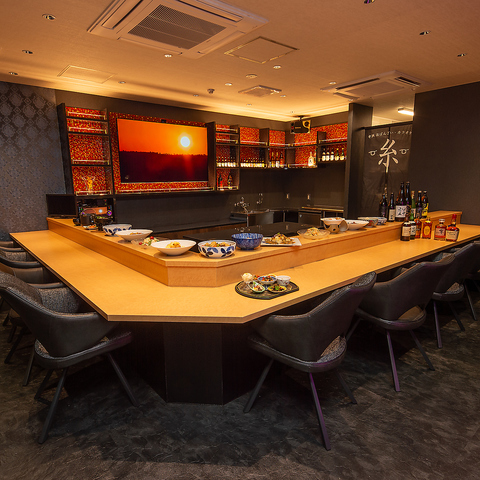 バーのような黒を基調とした落ち着いたカウンター席をご用意しています!オシャレな雰囲気となっているのでデートでのご利用やお一人様でお酒とおばんざいを楽しむにもピッタリの空間となっています!