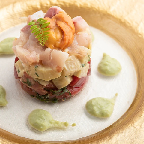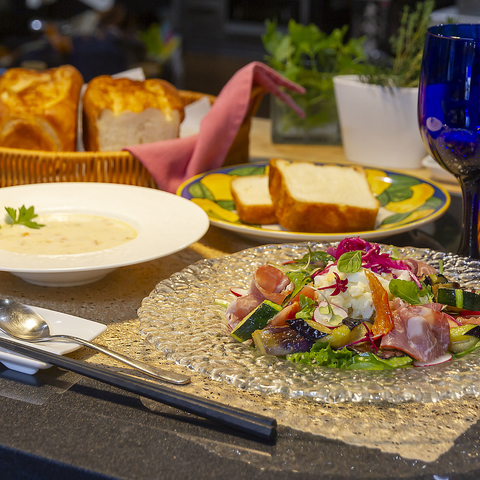 全6品(アミューズ・季節野菜と生ハムのサラダ・パン・メインディッシュ・デザート・コーヒー)に厳選したワインがセットになったコース。調理師、そして日本ソムリエ協会ワインエキスパート・エクセレンス・司厨士としての知識を活かし、料理の相性とゲストの好みに合わせた最適なペアリングを提案します。※4名様~