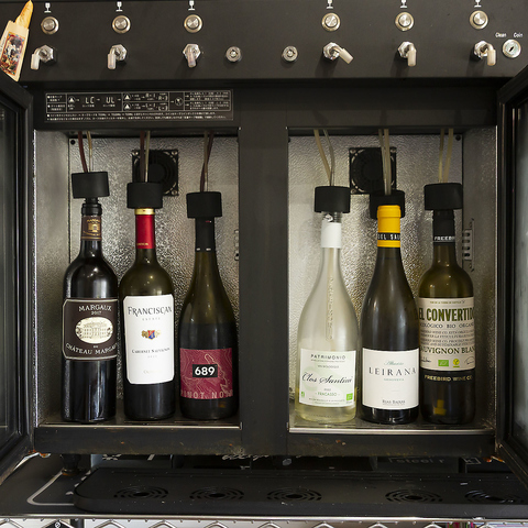 ワインボトル内の空いた空間に窒素を充填させることでワインの酸化進行を飛躍的に遅らせる「ファンヴィーノワイン・Sakeサーバー」を設置。コインを入れて、気になるワインのボタンを押すといつでも開けたてのワインの風味を味わうことが可能です。初心者~マニアまで大満足の品質でご提供します♪