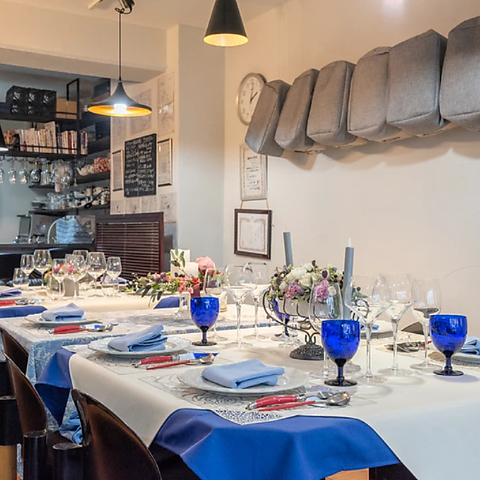 白を基調としたオシャレな店内。テーブルコーディネイトもゲストの利用目的に合わせて提案してくれます。お食い初め・還暦祝い等では赤を、結婚記念日・誕生日ではローズやピンクをと、特別な日を華やかに彩ります。