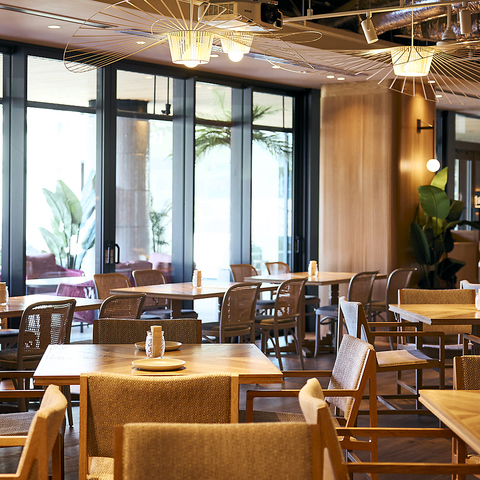 代々木公園の豊かな緑が広がり、心地よい自然の風を感じていただける都内最大級のパークフロントバルコニーレストラン。店内はハワイの雰囲気漂う開放的な空間となっており、リラックスしたひと時をお過ごしいただけます。テーブル席に加えて、落ち着いてお食事いただける個室をご用意しました。充実した夜の時間をお楽しみください。