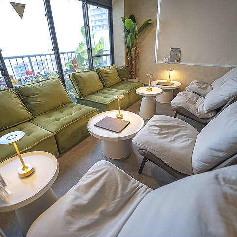 テーブル席はソファータイプで、8名様でご利用可能◎ゆったりとした座り心地で、友人との会話も弾みます!長時間滞在にも適したソファー席は、大人数でも気兼ねなく、楽しい時間を過ごせるようにデザインされた空間なので、どうぞリラックスしながらお過ごしくださいませ♪