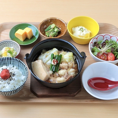 新鮮なもつがたっぷり入った「もつ鍋」は、玉ねぎベースの濃厚な味わいが特徴!ランチタイムは「もつ鍋定食」の一人鍋スタイルでお楽しみいただけます♪
