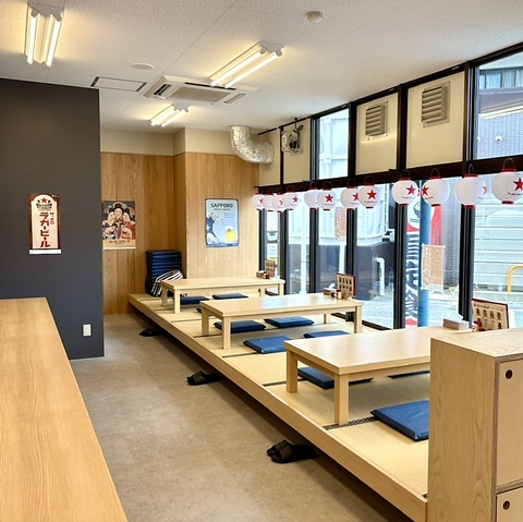 広々と大衆的な雰囲気の店内!全面ガラス張りの入りやすい雰囲気なので、おひとり様でもお気軽にどうぞ!