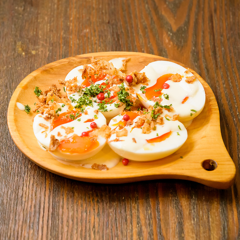 大本命の卵のアヒージョは、絶対に食べておきたい一品。とろ~りとした卵とオイルが絡み合い、バケットにつけて食べた時の幸福感はたまりません…!あつあつの卵のアヒージョを、バケットにたっぷりと乗せてお召し上がりください♪