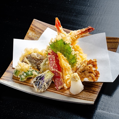 素材の旨みを活かした自慢の天ぷら。海洋深層水100%の純国産のお塩でお召し上がりください。新潟の料亭や割烹、ホテルで長年経験を重ねた大将の織り成す天ぷらは一度は食べていただきたい逸品です。